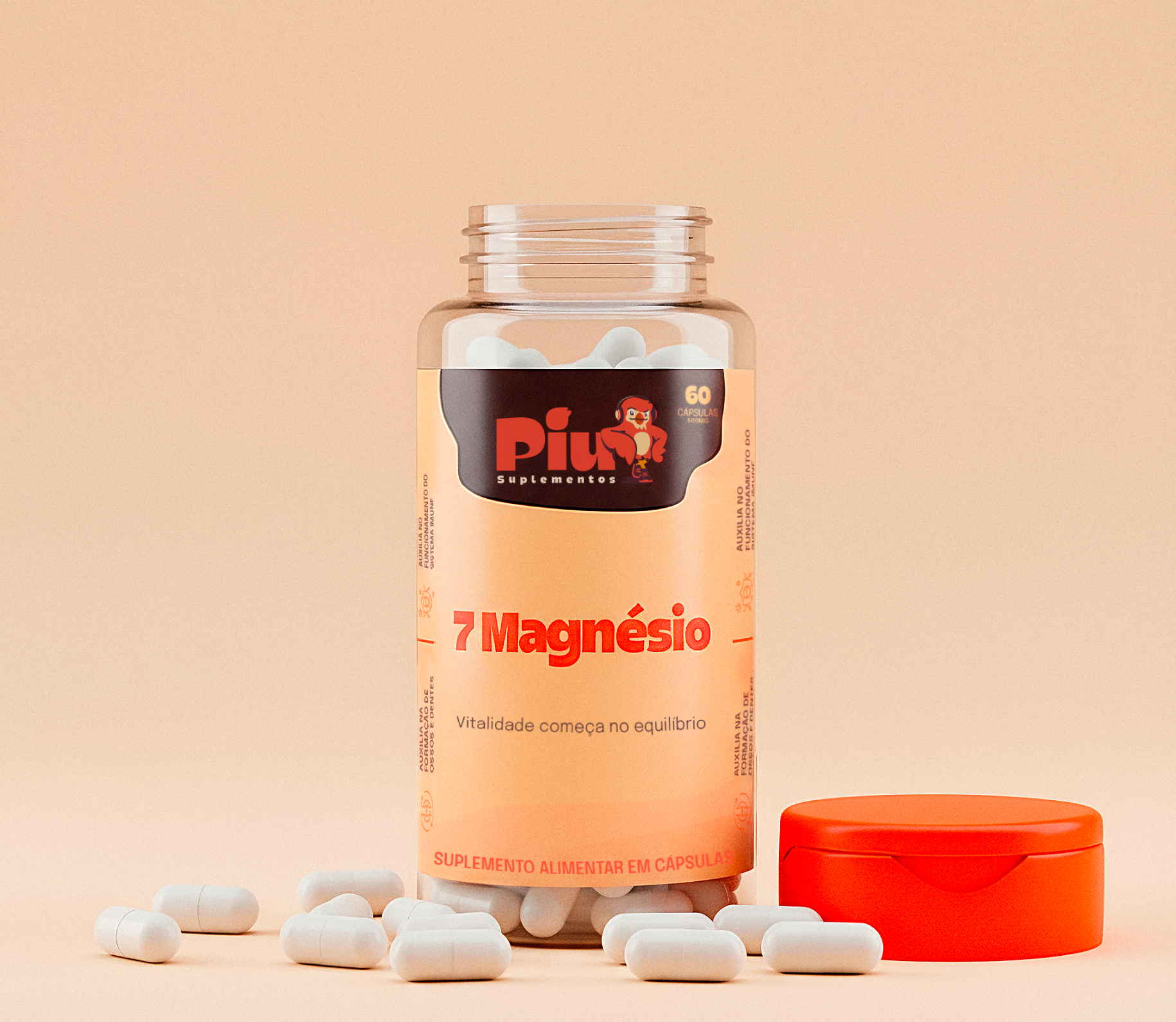 Enquanto a maioria dos suplementos contém apenas 1 tipo de magnésio, o 7 Magnésio Piu combina 7 formas altamente biodisponíveis para atuar em diferentes áreas do corpo: cérebro, músculos, sistema nervoso, coração e intestino.